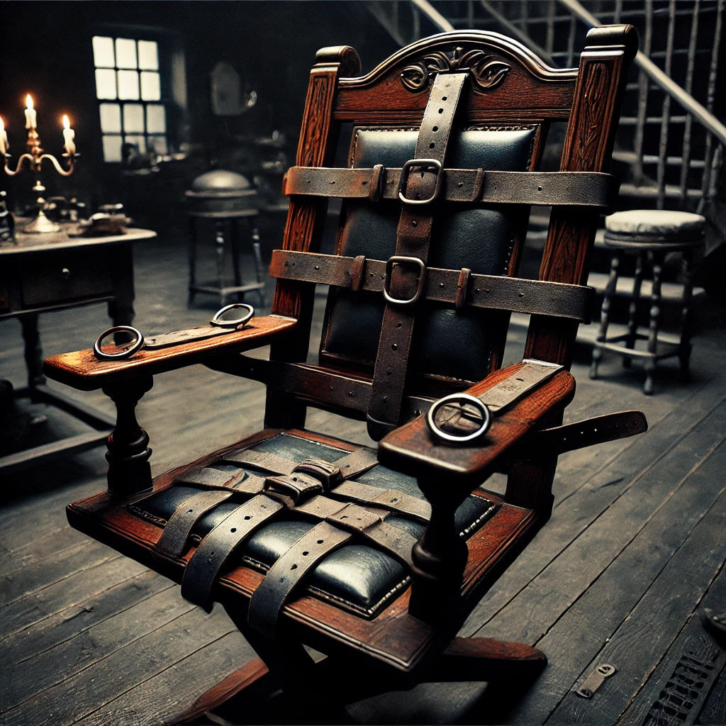 Омниус оказался в полутёмной комнате, освещенной тусклым светом масляных ламп. Воздух в помещении был пропитан слабым запахом лекарственных трав и чего-то тяжелого, отдалённо напоминающего спирт. Кабинет напоминал скорее лабораторию, нежели уютный уголок для помощи страдающим душам. Грубые деревянные полки были заставлены склянками с настойками и медицинскими инструментами, многие из которых казались пугающе примитивными для взгляда человека из XXI века. Однако основное внимание Омниуса сразу привлекло необычное кресло, расположенное в центре комнаты.