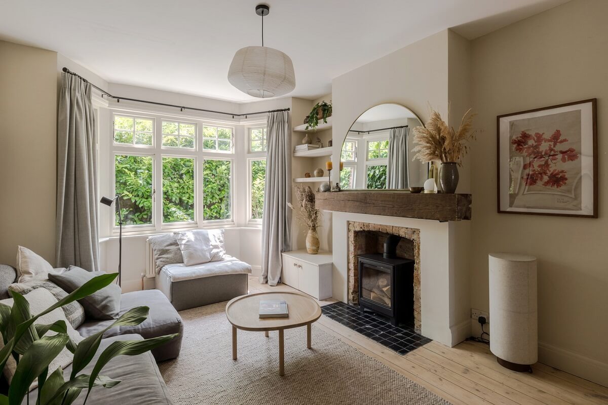 Менее чем в четверти мили от пляжа в английском графстве Кент стоит прекрасный дом, где старое и новое гармонично сочетаются в интерьере. Дом был тщательно отремонтирован в последние годы сохраняя оригинальной планировки, где сочетаются современная и традиционная эстетика. Дом окружен прекрасным садом, в который можно попасть через пристройку к кухне. Гостиная представляет собой чудесное, спокойное пространство со стенами, окрашенными в оттенок напоминающий пляж, большим эркером и уютным кирпичным камином, окруженным нишами с полками для книг. В кухне и столовой открытой планировки можно увидеть великолепное сочетание современной и традиционной эстетики. Кухня оснащена современными шкафами с дубовыми фасадами, которые сочетаются с серой столешницей. Серый оттенок продолжается в шкафах от пола до потолка с другой стороны. Широкий проем ведет из кухни в оранжерею, которая превращена в светлую столовую и гостивую зону. Окрашенные и обшитые досками потолки поднимаются вместе с линией к