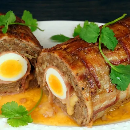 Мясные рулеты часто готовят на праздник, ведь при всей простоте их приготовления они выглядят так красиво, будто над ними долго трудились. Готовьте по этим замечательным подробным рецептам и добавляйте их в закладки. Чтобы приготовить вкусный мясной рулет, достаточно взять нарезанное на пластины и слегка отбитое мясо или фарш, специи, соль и чеснок. Но на праздничный стол мы хотим приготовить яркое, впечатляющее блюдо, поэтому стоит проявить фантазию. Наиболее популярные начинки для мясных рулетов: вареные яйца, чернослив, курага, жареные грибы и лук, сыр, картофельное пюре, вяленые томаты, болгарский перец, шпинат, грецкие орехи. Сверху рулет можно обернуть беконом или слоеным тестом. Время запекания мясных рулетов зависит от их массы. Обычно маленькому рулету в полкило требуется полчаса при 200 градусах, рулету в 1 кг нужен час, а полуторакилограммовому - полтора часа. Рулеты из фарша запекаются в среднем 40-50 минут. Если они слишком быстро зарумяниваются, нужно накрыть фольгой. Фар