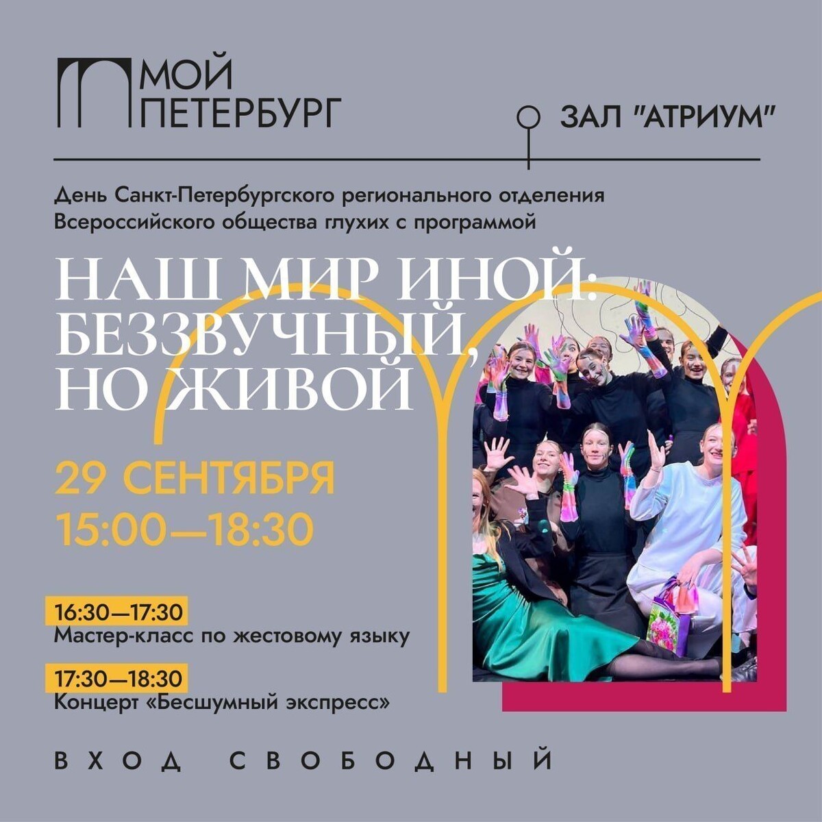 «Наш мир беззвучный, но живой»: программа, посвящённая Международному дню глухих, пройдёт на выставке «Мой Петербург» в историческом парке «Россия – моя история». Гостей ждут презентация петербургского Общества глухих, круглый стол на тему «Доступная среда» с представителями ведущих музеев города, мастер-класс по жестовому языку и концерт «Бесшумный экспресс». Сделать шаг навстречу миру людей с нарушениями слуха и помочь создать пространство, где наши различия не будут препятствием для взаимодействия, можно 29 сентября. Вход свободный. Ранее «Петербургский дневник» сообщал, что организаторы выставки «Мой Петербург» опубликовали расписание программы на 17-22 сентября.