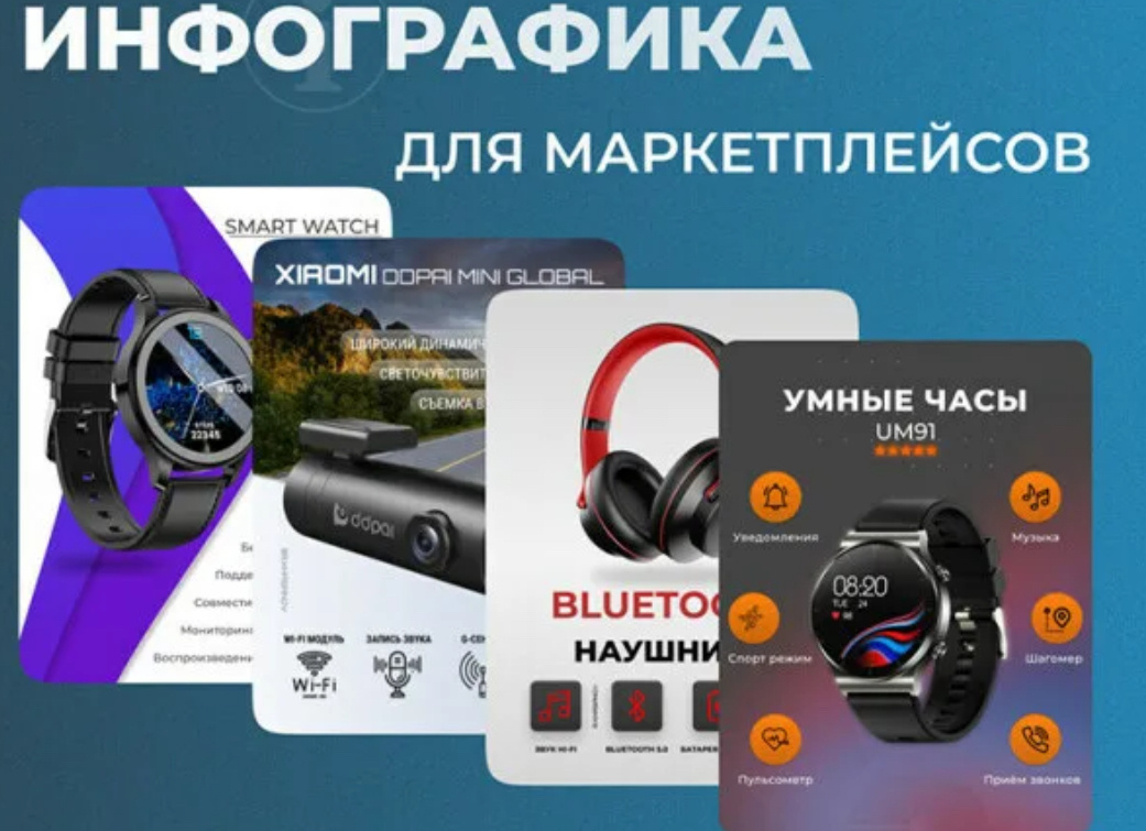 Создание эффективной инфографики для карточек товара на маркетплейсе Ozon включает несколько ключевых шагов: 1. **Определите ключевые характеристики**: Выделите наиболее важные и привлекательные характеристики вашего товара, такие как размер, цвет, материал, уникальные функции и преимущества. 2. **Используйте четкую и простую визуализацию**: Инфографика должна быть легкой для восприятия. Используйте понятные иконки, графики или диаграммы, чтобы отразить информацию. Избегайте перегруженности деталей. 3. **Соблюдайте стиль и бренд**: Дизайн инфографики должен соответствовать стилю вашего бренда и быть согласован с остальными элементами карточки товара. Используйте фирменные цвета и шрифты. 4. **Подчеркните преимущества**: Сделайте акцент на уникальных особенностях и преимуществах товара, которые могут привлечь внимание покупателей. 5. **Используйте качественные изображения**: Если в инфографике используются изображения товара, они должны быть высокого качества. Нечеткие или размы