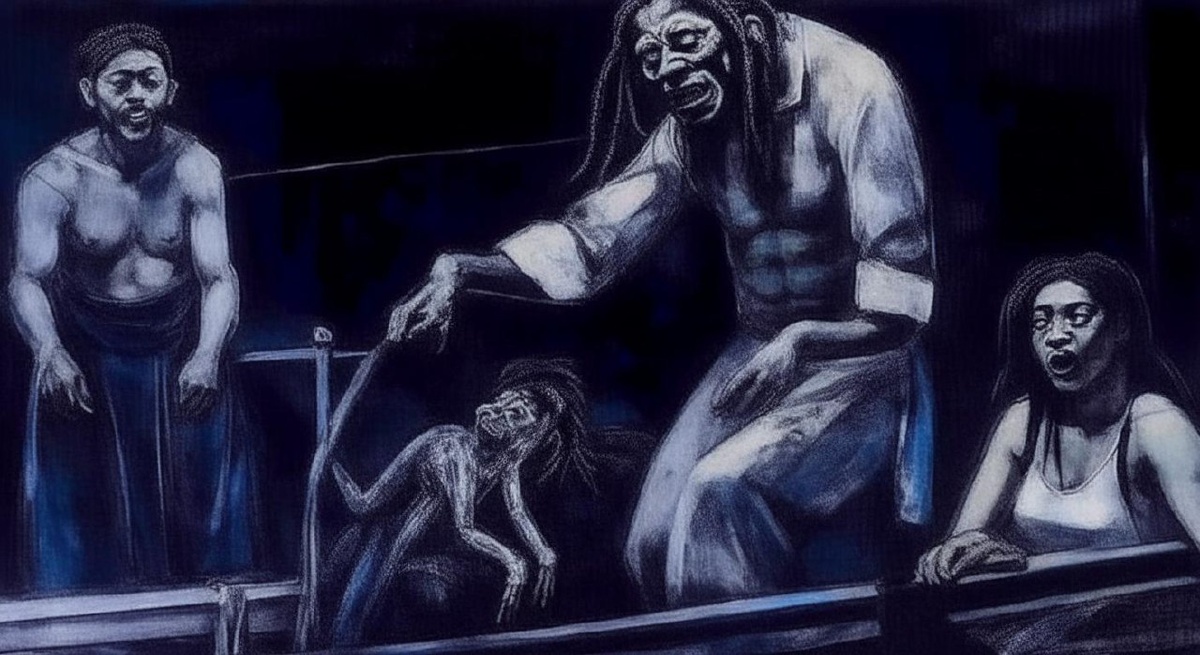 - Внешний вид: В мифах Абизу часто изображается как чудовище, имеющее ужасающий вид. В некоторых версиях у нее всего лишь одна голова с распущенными волосами и зелеными горящими глазами. Ее внешний вид символизирует болезни, смерть и разрушение, которые она приносит.