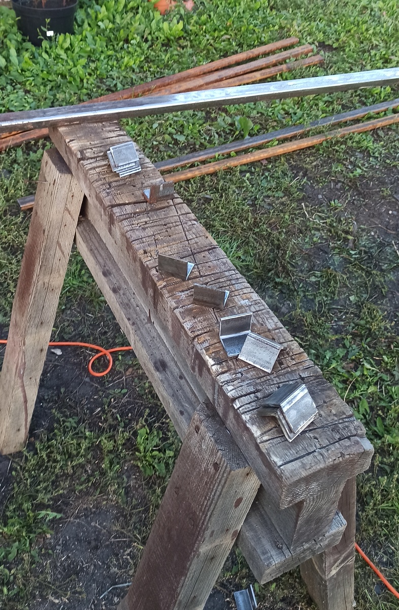Во второй части расскажу и покажу как делал теплицу (верхнюю ее часть). Если кто знает про "муки выбора", то поймет меня. Чем больше читал и смотрел видео о постройках самодельных теплиц - тем более становилось все запутанней. В итоге решил делать так как решил. Железо, было куплено. Правда уже изрядно покрылось ржавчиной, поэтому каждый отрезок профильной трубы приходилось зачищать и сразу окрашивать грунт-эмалью по ржавчине. Мне показалось так гораздо удобней, чем потом красить всю теплицу, тем более, если не окрасить то через 2-3 дня - на трубах снова появляется ржавчина. Итак, за дело. Решил делать отдельно стоящие рамки и приваривать их к основанию. Размечаем и нарезаем профильную трубу 40 на 20 мм на отрезки. Заготавливаем отрезки уголков (из уголка 30 на 30 мм). Готовим и устанавливаем основание. Теперь готовим рамы. Благодаря уголкам (50 на 50 мм) собрал на земле ровную платформу для сварки рам. Устанавливаем рамы на основание. Устанавливаем перемычки. Как