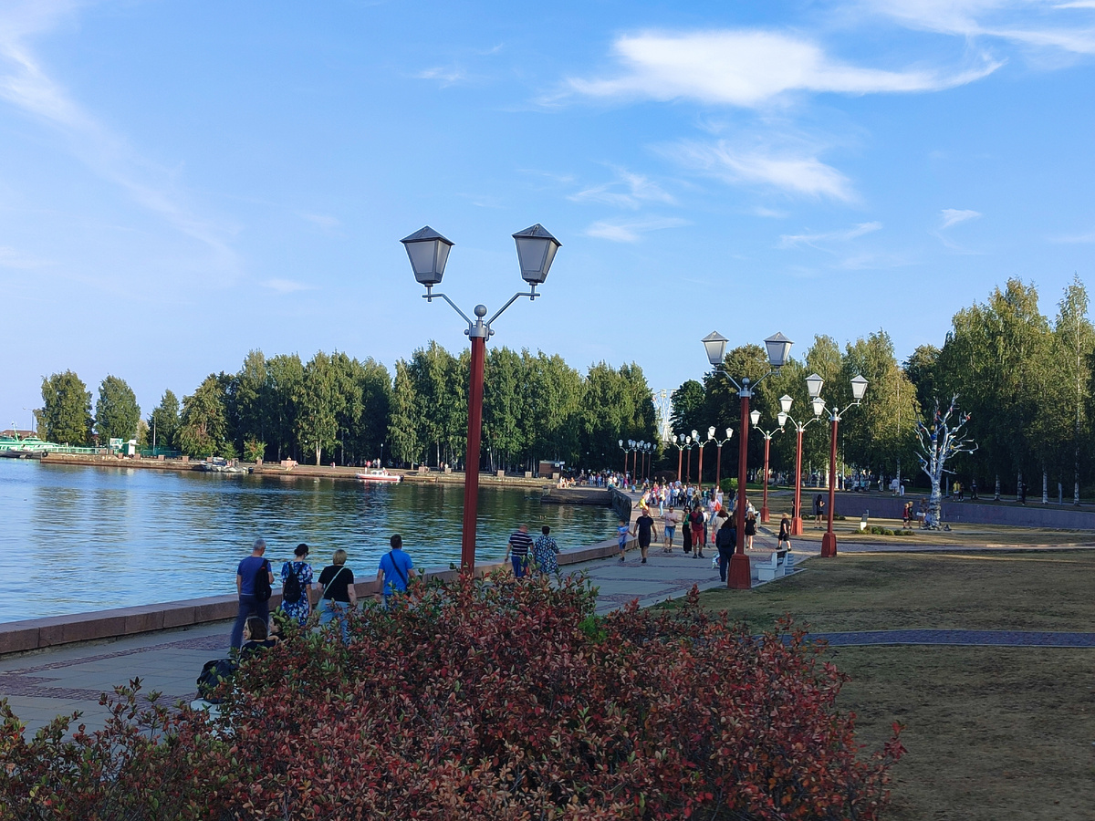 Набережная строилась не один год, и состоит, словно лоскутное одеяло, из разных кусочков. Первый ряд-дорожка, рядом с озером, самый старый. Там и плиты еще "древние" и кое-где расколоты или даже немного вздыблены. Но эти неудобства не сразу и замечаются. Все сглаживается атмосферой праздника, царящей на набережной. Хотя, думаю, девушки, вышедшие на фотосессию на каблуках в самом неподходящем месте, так не считают.