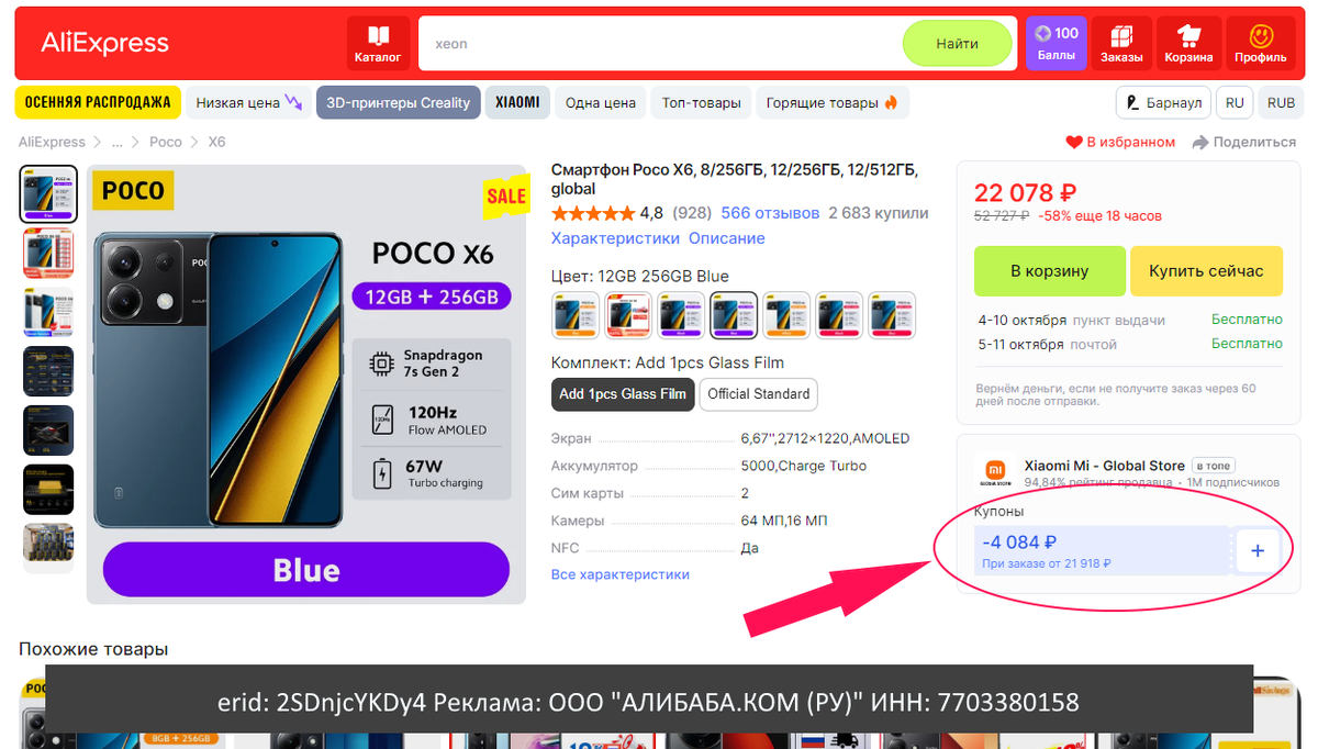 Задумал я тут по случаю юбилея побаловать себя новым смартфоном. Платить за смартфон как за крыло от Боинга желания не было. Но и покупать очередной аппарат с функцией, имитирующей фотокамеру тоже не хотелось. В общем, было желание заплатить поменьше, а получить больше - больше памяти, больше качества в снимках и так далее. Словом, нормальное человеческое желание) Ну и пошел я искать смартфон на популярном у нас маркетплейсе, называть который не хочу, так как могут счесть рекламой, а рекламу теперь маркировать надо. Ну это тот самый сайт, который Маликов на пару с Мариной Кравец рекламировал. Должен сказать, есть там цены интересные. И моделей полно. Выбирал долго. Бюджет для себя определил максимум 20 - 25 тысяч рублей. Искал модели, читал про них отзывы, смотрел обзоры. Опять же не буду писать, из чего выбирал, чтобы не заниматься маркировкой рекламы по каждому смартфону. Напишу только на чем остановился. Выбрал аппарат POCO X6. который всё на том же маркетплейсе стоил примерно от