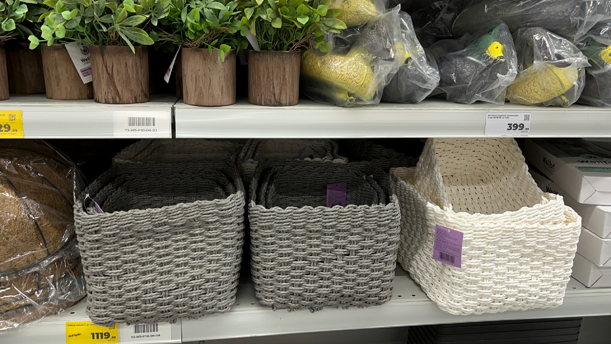 Появились плетеные декоративные корзинки, в наборе три штуки, и все они разного размера.