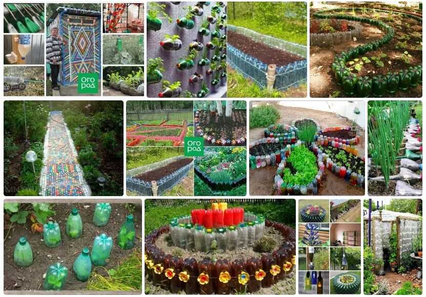 Фёдор Хан Дорожки на участке можно из бутылок оформить, клумбы. Я когда сажаю рассаду весной, накрываю её половиной разрезанной бутылки, а потом использую эти половинки для декорирования дорожек на участке. Получается двойная польза: и рассада сохранена, и дорожки красиво оформлены. При этом стоимость всего этого составляет сущие копейки.