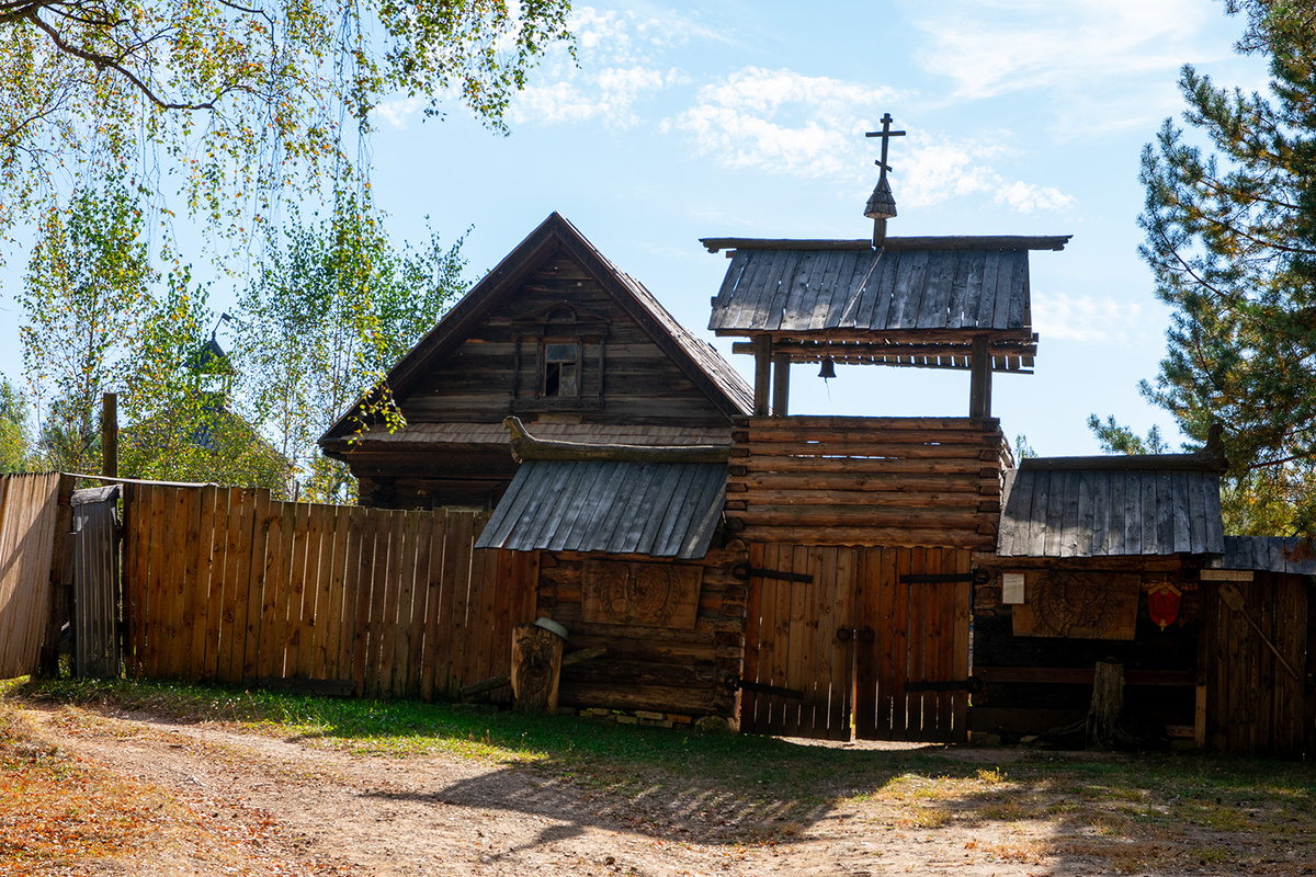 Собирался съездить давно, более года и все никак не складывалось. Наконец, созрел. Дали мне телефон, и я за два дня до поездки начал названивать, но дозвониться не смог – автоответчик все время сообщал о недоступности абонента. Решил, что надо поехать и посмотреть на месте, если не получится – поеду дальше. К счастью, ворота отворились и вышел владелец – Андрей Викторович Баранов. Пригласил посмотреть. Да, с самого начала надо сказать, что вокруг тишина, чудесный сказочный лес, свежий воздух и удивительное спокойствие – вдали от городской суеты. Андрей Викторович пояснил: есть два вида экскурсии – сокращенный и полный, продолжительность два часа. Разумеется, двухчасовой вариант. Стоимость 850 руб. Когда входишь, возникает ощущение, что оказался в сказке, за воротами перемещаешься в прошлое, лет на двести-триста. Откровенно говоря, я не ожидал, что музей окажется таким большим, содержательным и самое главное с огромным числом экспонатов. Они приобретены и привезены Андреем Викторовичем