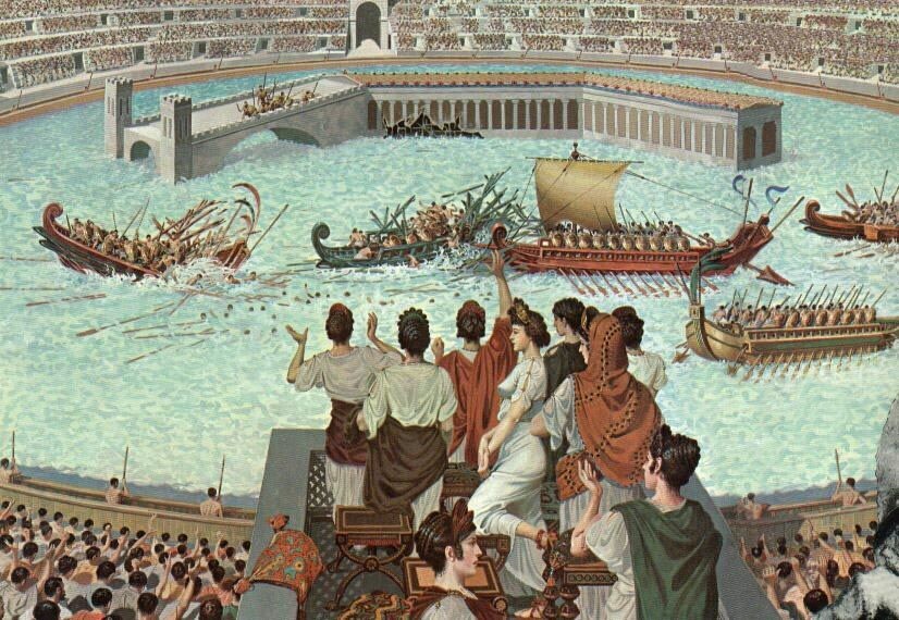 Наумахии представляли собой грандиозные инсценировки морских сражений, проводимые на специально сооруженных аренах. Для этих целей использовались как искусственные бассейны, вырытые на Марсовом поле или в других местах, так и естественные водоемы – озера и реки. В качестве участников наумахий выступали в основном гладиаторы и осужденные на смерть преступники, которым предоставлялась возможность "отвоевать" себе свободу в жестокой схватке. На аренах разыгрывались исторические морские битвы, например, Саламинское сражение или битва при Акциуме. Участники, облаченные в костюмы греков, персов, римлян или других народов, сражались на копиях настоящих военных кораблей. Они поражали своим размахом, количеством участников и реалистичностью боевых действий, и стали неотъемлемой частью культуры Древнего Рима, отражая его военную мощь, имперские амбиции и жажду зрелищ. Самые первые наумахии, организованные Юлием Цезарем, проходили в искусственном бассейне, вырытом на Марсовом поле в Риме. Для нау