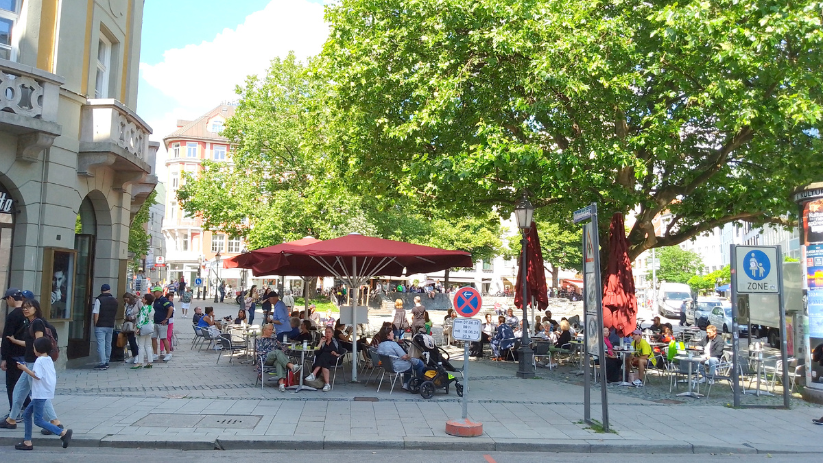 Площадь в центре Мюнхена Риндермаркт (Коровий рынок)-одна из старейших в городе. В средние века здесь в самом деле находился рынок где продавлся крупный рогатый скот. С 17-го века здесь стали строить дома богатые горожане и шла оживлённая торговля. Сейчас Риндермаркт выглядит оазисом спокойствия в сердце города. На площади находится несколько летних кафе всегда заполненных публикой. На первых этажах зданий по периметру расположены маленькие магазинчики и бутики. Словом, типичный вид площади в западноевропейском городе. На площади находится каскадный фонтан 1964 г. постройки изображающий стадо коров, фонтан напоминает об историческом прошлом площади и является любимым местом для игр детей. На фото ниже Риндермаркт на гравюре 1609 года. В северной части площади Риндермаркт находится Руффини-хаус, красивое здание 1905 г. в стиле модерн. Собственно это комплекс из трёх зданий раньше принадлежавший богатой семье Руффини из Тироля, разбогатевшей в средние века на торговле солью. Здания мног