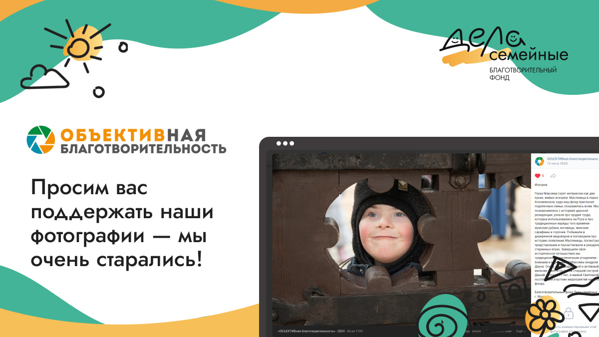 Дорогие друзья, наш фонд участвует в конкурсе «ОБЪЕКТИВная благотворительность» - это проект, направленный на развитие культуры коммуникации и визуальной самопрезентации некоммерческих организаций и социально активных компаний, реализующих свои программы на территории России.