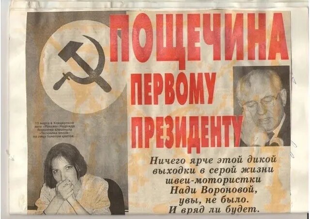 Пощёчина Горбачёву или о том, как простая швея Надя Воронова исполнила желание миллионов бывших советских граждан