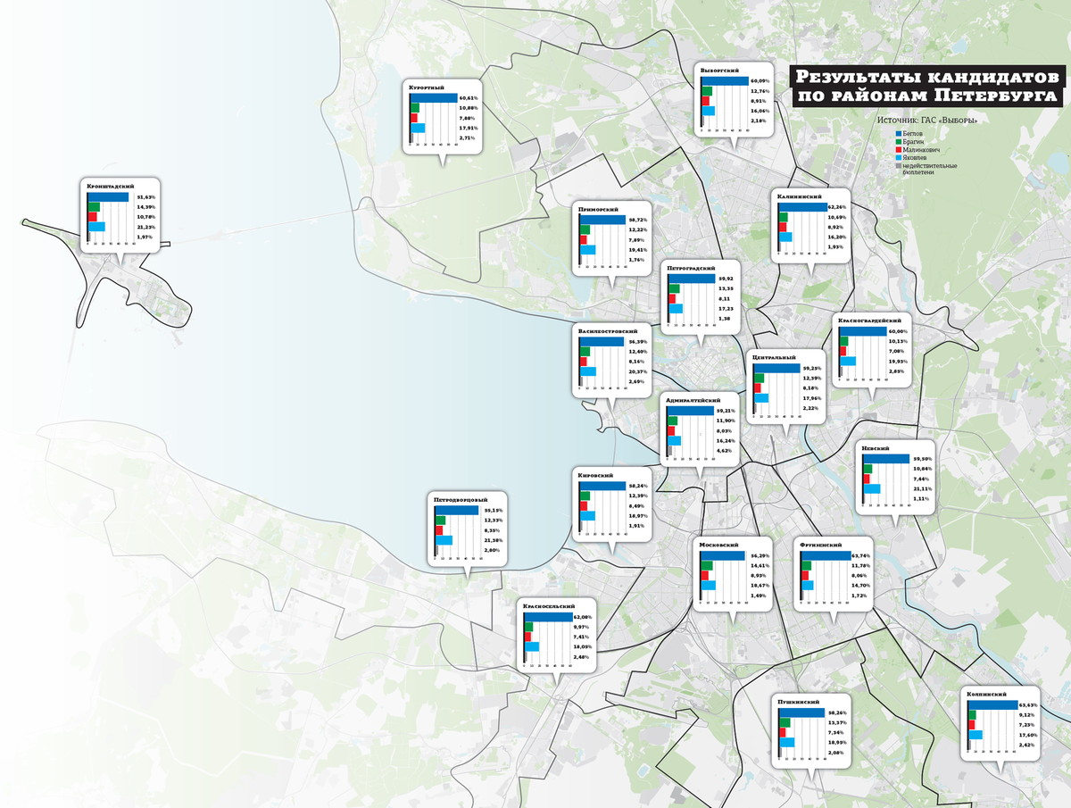 Где Беглов набрал больше всего голосов