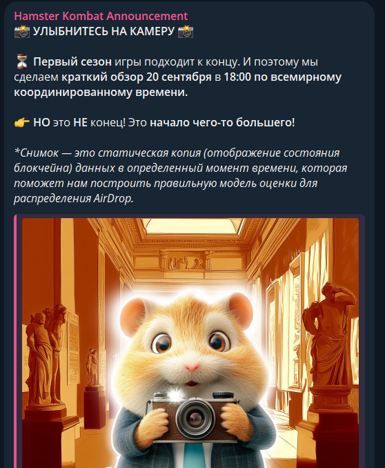 Команда Hamster Kombat объявила о завершении первого сезона игры