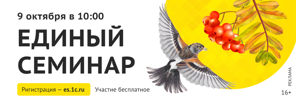 Привычное большое осеннее мероприятие подготовит участников к изменениям, которые ждут всех нас в ближайшие месяцы. ПРОГРАММА: 9 октября в 10:00 подключайтесь к онлайн-трансляции Единого семинара 1С! Смотрите доклады специалистов в законодательстве и его практическом применении на рабочем месте. Обсуждайте новости с коллегами и экспертами АРБИС в общем чате. Зарегистрироваться и занять лучшие места вы можете уже сейчас. Сделать это можно по ссылке: . РЕГИСТРАЦИЯ . Участие в мероприятии бесплатное. 16+ #ЕС1С