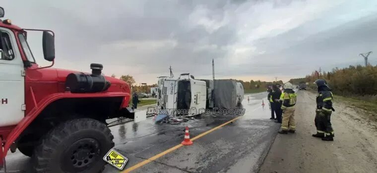 На трассе Сургут-Нижневартовск перевернулся цементовоз: водитель остался жив, но получил травмы