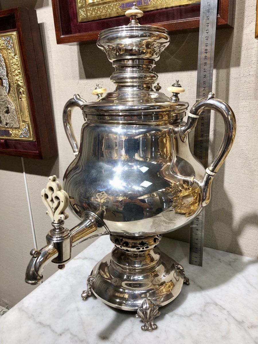 Серебряный самовар- один из знаковых показателей статуса владельца для дореволюционной России. За счет большой массы драгоценного металла, приобретение такого предмета было по карману лишь немногим состоятельным господам, а разрешали себе купить это чудо и того меньше. И за счет большой массы же очень мало дошло их до наших времен, ибо в лихие годы пускали на металл даже медали наградные, что говорить о многих килограмммах серебра в утратившей свой функционал после массовой электрификации посуде. Сегодня серебряный самовар- это тоже показатель успеха. Успеха, везучести и состоятельности антикварщика. Покупка серебряного самовара- памятное событие в жизни каждого скупщика, каждого торговца антиквариатом. Жизнь зачастую разделяется на «до» и «после». Своего рода профессиональный экватор… Сколько историй о том, как погожим летним утром покупался серебряный самовар у забредшего в скупку счастливого наследника, а уже днем, после данного по этому случаю праздничного обеда, не менее счастл