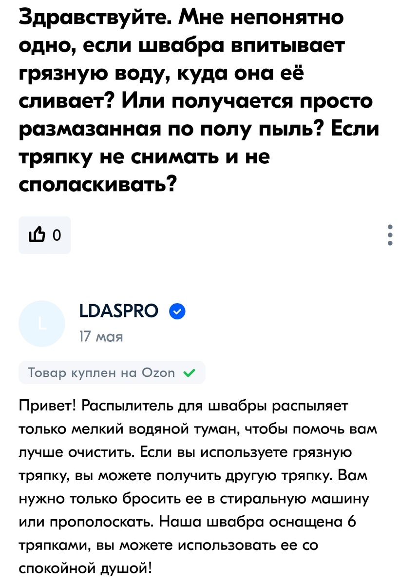 После одного неприятного случая на Wildberries и получения неадекватного ответа от продавца стала чаще обращать внимание не сколько на отзывы, а сколько на ответы бренда на них (особенно, на отрицательные отклики). По общению менеджера/представителя магазина можно сделать вывод, как минимум, о качестве сервиса и порядочности продавца. Вопрос к обычной швабре с обычной фибровой насадкой и распылителем воды. Еще больше странных ответов тут. Это один и тот же продавец. Как видим, реакция на единичные отрицательные отзывы одинакова - негативна. Да еще с угрозами, уличением покупателя во лжи... Понятно, что свой товар продавец будет отстаивать до последнего, но и покупатель имеет право на вое мнение. А вы тоже не понимаете, что же не понравилось покупателю? Листайте фото вправо, там крупный план сломанных вешалок. То есть, наглядного фото мало, надо обязательно пояснения оставить). Даже комментировать не хочется. Жаль, увидела его поздно - уже успела купить прибор (нареканий не вызвал, е