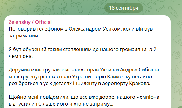 Зеленский ночью «держал мазу» за Александра Усика, которого задержали силовики в аэропорту Кракова