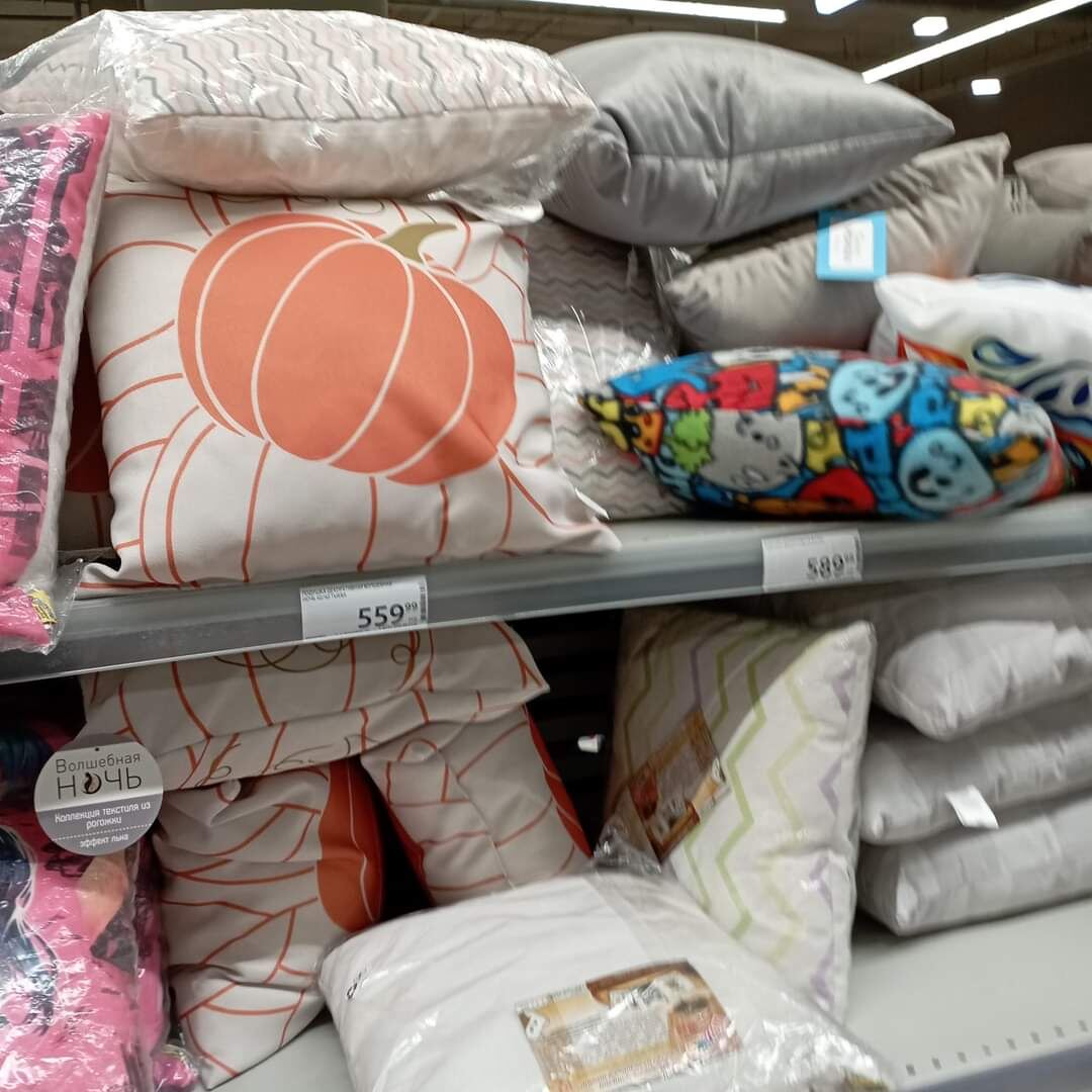 Купила Я в ашане подушку с тыквой из рогожки с эффектом льна. На этикетке было сказано, что там целая коллекция домашнего текстиля. Я пошла поискать, что есть еще. Оказалось, что коллекция называется Волшебная ночь, есть еще покрывала, пледы и наволочки. Но, видимо, это какой-то пазл, который невозможно собрать, как нельзя из букв ж, о, п, а собрать слово ИКЕА. Наволочки в 5 расцветках - бежево-серый, цвет морской волны, сиреневый, коричневые разводы и зелёные абстрактные листья. Покрывала и пледы все однотонные - три оттенка серого, фиолетовый, сиреневый. Еще есть длинные подушки - темно-серая и коричневая. И подушка с тыквой. Я набрала сочетание "из рогожки с эффектом льна" в поисковике, мне выдало только шторы. Оказывается, в коллекции они есть, тоже однотонные - серые, цвет морской волны, фиолетовые, сиреневые. Продаются и на официальном сайте и на маркет-плейсах. Но не в Ашане. Видимо, это Волшебная ночь в дурдоме 😂😛😀 Возможно, в производителей и дизайнеров была какая-