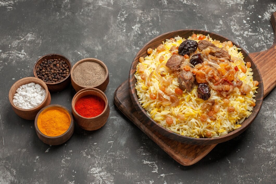 При подаче маклюбе емкость накрываем плоским блюдом, переворачиваем и подаем ароматную пирамиду на стол.