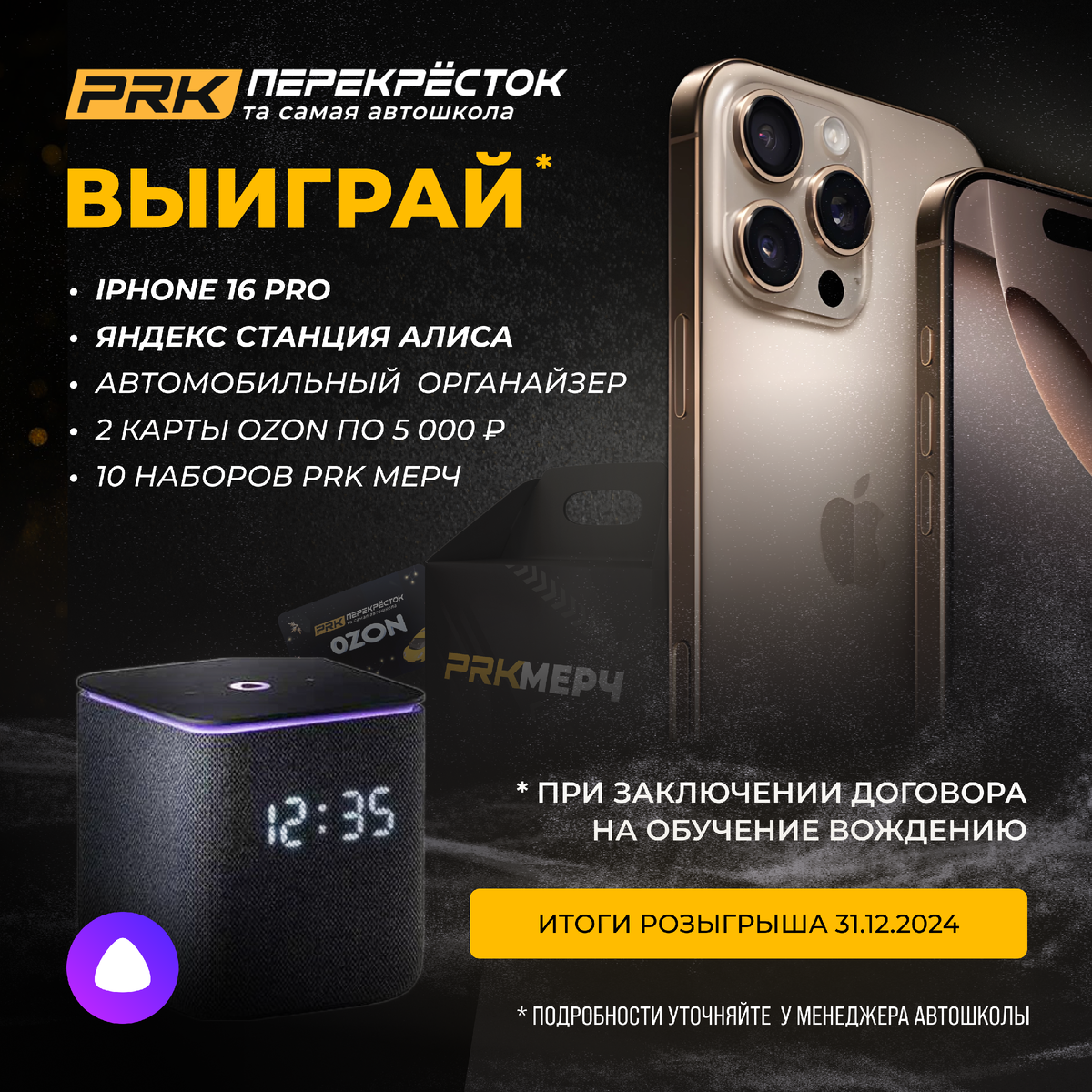 Федеральная автошкола Перекрёсток всегда с вами на одной волне, поэтому мы решили сделать приятный сюрприз своим ученикам. Мы запускаем акцию и дарим подарки, которые тебе точно понравятся: Победить просто! Заключи договор на обучение вождению в Федеральной автошколе Перекрёсток на любую категорию и стань участником розыгрыша!!! Как стать участником розыгрыша? 1. Оставь заявку на обучение. 2. Заключи договор на обучение в период с 10.09.2024 по 30.12.2024. 3. Подпишись на наши социальные сети prk_russia, чтобы не упустить результаты розыгрыша, который пройдет 31.12.2024. Получай качественное обучение вождению и права в Федеральной автошколе Перекрёсток, а также получи те самые подарки! Звони или пиши менеджеру PRK Перекрёсток, чтобы узнать больше! __________________________ Федеральная автошкола Перекрёсток уже более 15 - лидер среди автошкол в России. Та самая автошкола, которую рекомендуют друзьям и родным! Автошкола Перекресток — это современная автошкола, которая предоставляет каче