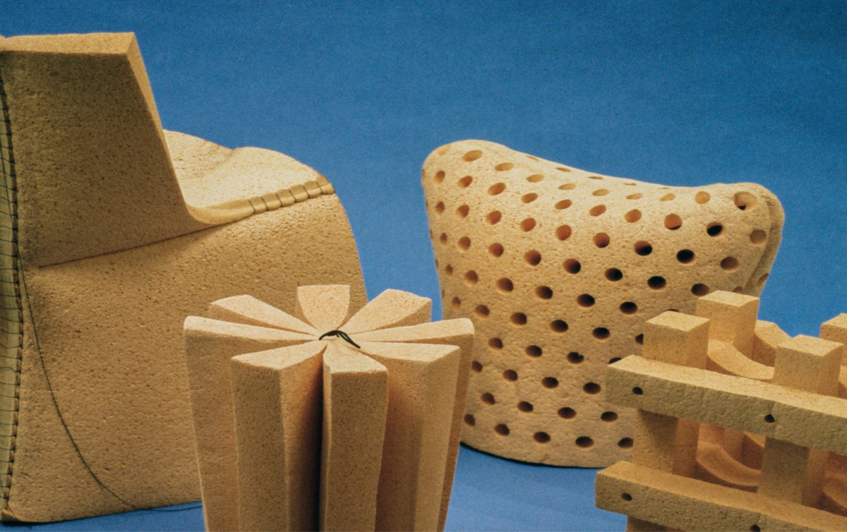 Работа Гаэтано Пеше из саморасширяющегося полиуретана была представлена в Милане ещё в 1969 году. А линейка плоской мебели Under Pressure Solutions от ÉCAL — на Неделе дизайна в Милане в 2024 году.