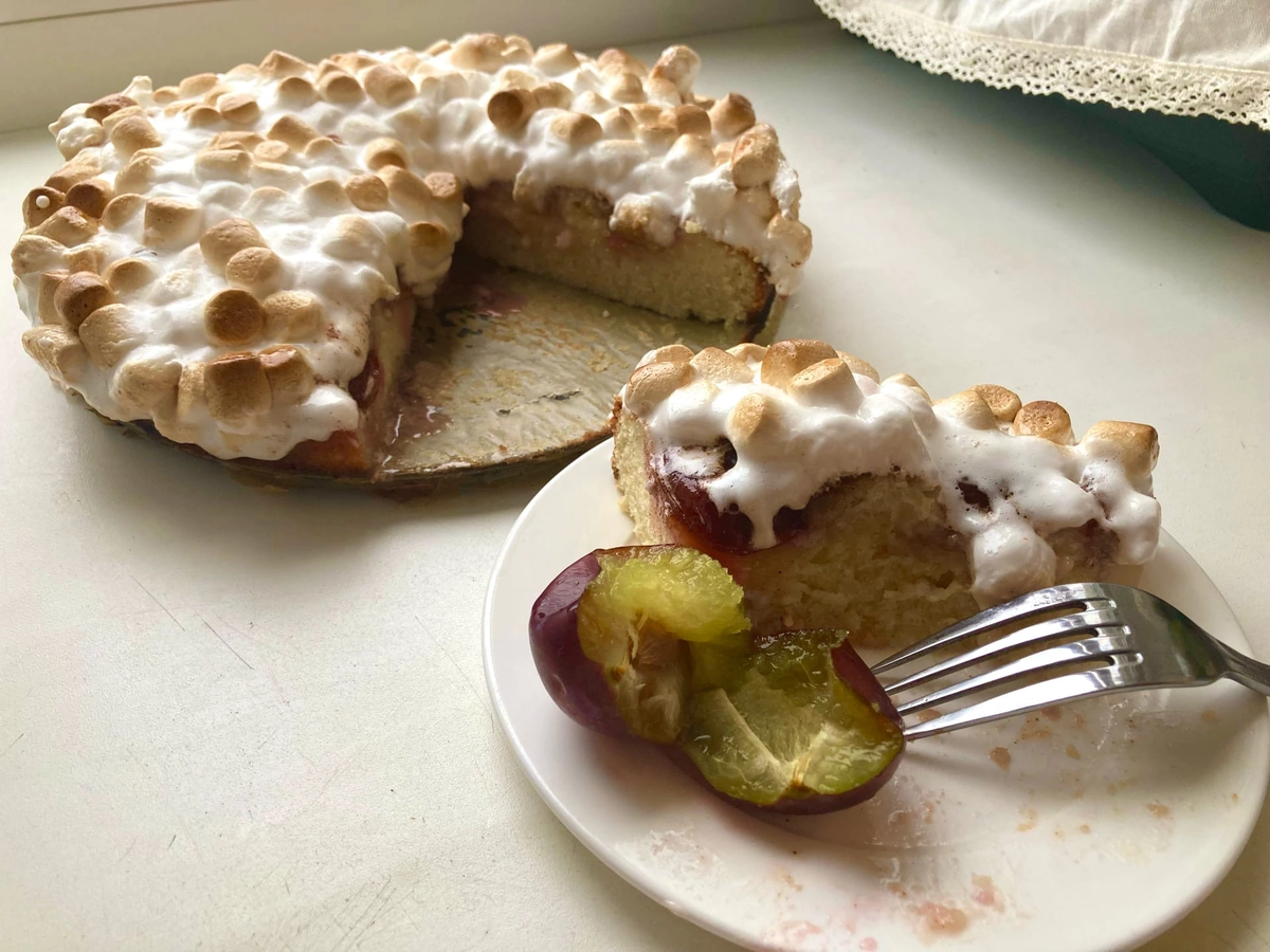 Тот случай, когда увидела в магазине отличные сливы и уже представляешь запах этого пирога🥧❤️🔥 Совершенно классический и универсальный рецепт теста, для начинки подойдут и другие фрукты. Понадобится: Сахар - 100 гр (в тесто и на посыпку), Мука - 200 гр (стакан), Яйца - 2 шт, Масло сливочное - 120 гр (2/3 пачки), Щепотка разрыхлителя и соли, Корица молотая (на посыпку), Сливы - 8-9 штук. ☝🏻Консистенция теста должна быть нежидкая, пластичная. Яйца и масло - комнатной температуры. Выпекать при 180 градусах примерно 30-40 минут. Шапка из маршмеллоу – это уже излишество, считаю. Просто не смогла остановиться😁