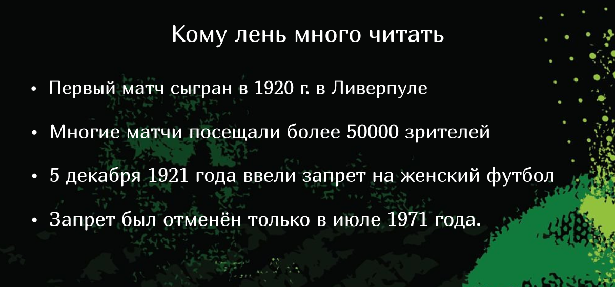 В последние десятилетия женский футбол стремительно развивается, привлекая все больше внимания и интереса как со стороны болельщиков, так и со стороны спортивных организаций. Однако путь женского футбола к признанию и популярности был долгим и полным трудностей. В этой статье мы рассмотрим, с какими вызовами сталкивается женский футбол и какие перспективы открываются перед ним в будущем. Кто-то говорит: «О, женский футбол, это несерьёзно». Но позвольте напомнить, что до 1970-х годов женщины вообще не имели права играть в футбол на профессиональном уровне в некоторых странах. В Англии вообще, запрещали футбол для женщин на 50 лет! Этот запрет продолжался до 1971 года, когда женскому футболу наконец-то позволили развиваться на профессиональном уровне. Вы представляете, сколько поколений потеряно? В современном мире мужского футбола с его многомиллионными зарплатами, контрактами с брендами, трансляциями на весь мир, девчонкам приходится просто выгрызать каждую минуту на экране. И знаете