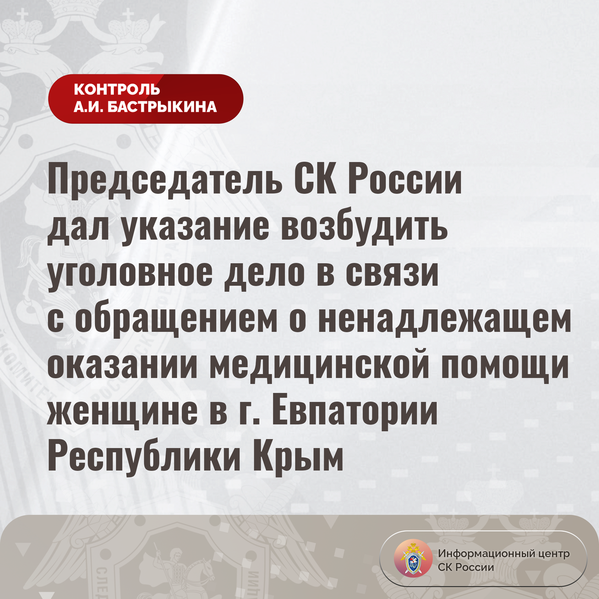 #СледственныйКомитет #СКРоссии #СКР #ИЦСКР #ИнформационныйЦентр #АлександрБастрыкин #ПредседательСКР #КонтрольПредседателяСКР #КомментарийКонтроль #Крым