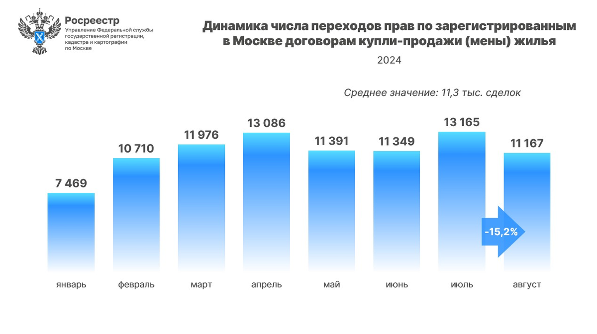 Друзья, добрый день. 17 сентября вышли данные московского Росреестра, которые в гипертрофированном виде разнесли все СМИ. Оригинал статьи называется "Вторичное жилье Москвы сохраняет спрос". В пересказе РИА получилось "Продажи вторичного жилья в Москве упали в августе почти на 40%", а в последующем пересказе Газеты.ру в "Рынок жилья Москвы переживает резкое падение продаж". Ладно, это всё на совести журналистов, но факт остаётся фактом, небольшой спад действительно есть. Хотя, если смотреть на абсолютное количество сделок - август мало чем отличается от мая и июня 2024, когда всё ещё была жива ипотека. Мой врожденный и ничем не обоснованный цинизм заставляет меня (безусловно, совершенно беспочвенно) искать, кто бы мог быть заинтересован в создании такого новостного фона. Но никого не находит. Думаю, это и не может быть никому выгодно, верно? Кому может мешать милая "московская вторичка", которая и так на 30% дешевле новостроек? Ума не приложу. Перехожу ко второй части своего пове