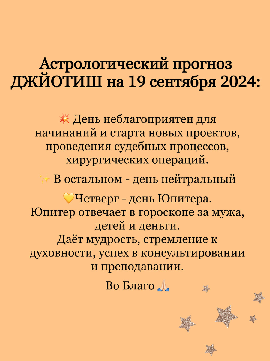 Астрологический прогноз ДЖЙОТИШ на 19 сентября 2024: