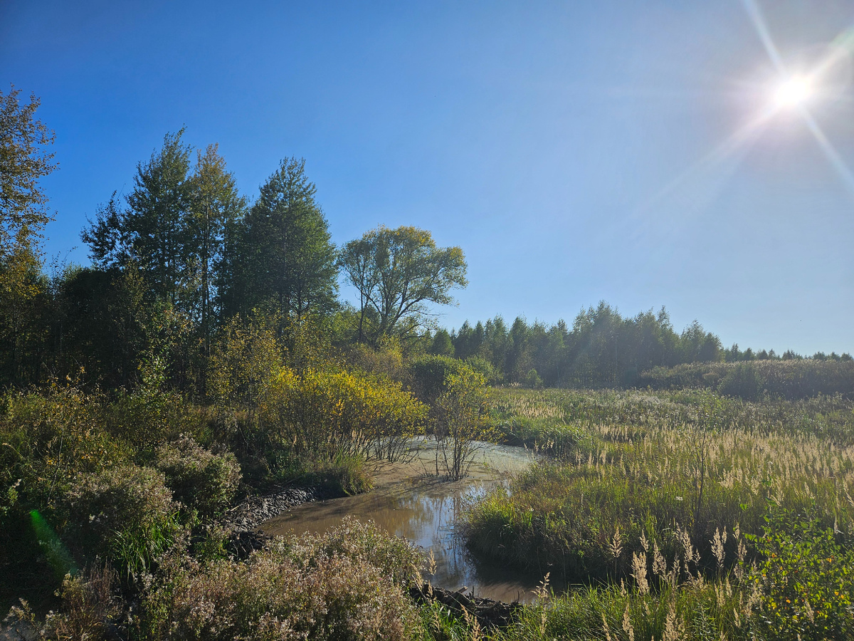 Искупавшись в пруду на зоне отдыха села Мокрый Корь, возвращаюсь домой. А, не заглянуть - ка мне в бобровое пристанище, что обосновалось буквально рядом с южной границей новой территории села? Заглянул и удивился. Плотины растут на глазах. Овраг Ольховчик, который обычно в эту пору становился сухим, сейчас на всем своем протяжении заполнен водой...
