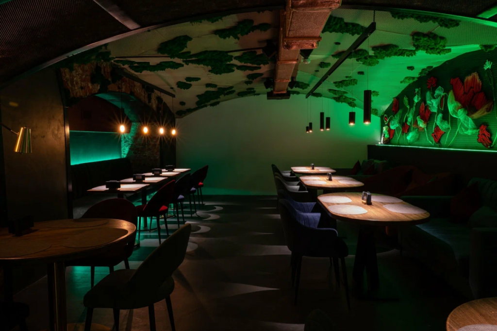 Москва. Проект из Казани с вечеринками, авторскими коктейлями и широким выбором блюд. Другие московские открытия Бар «Нить» от команды из Казани открылся на улице Большая Дмитровка, 32с1. В просторном темном зале со сводчатым потолком — отсылки к концепции заведения, выстроенной вокруг тканей. За баром представлены образцы материалов, в честь которых названы коктейли в барной карте: атлас, вельвет, кашемир и другие. В центре зала — манекен в одежде, созданной из этих же тканей, на стенах изображения цветов, напоминающие вышивку. В баре большой танцпол, где гости танцуют под диджей-сеты, отдельно — зона с более расслабленной атмосферой. Знакомство с коктейльной картой от шеф-бармена Германа Грибанова можно начать с любого из 12 фирменных коктейлей (по 890 руб.). К примеру, «Лен» — это джин-тоник с розмарином и газированным виноградом, «Атлас» — темный ром, медовая груша и земляника, а «Фланель» — светлый ром с кокосовым пюре и гранатовым кордиалом. Изучить захочется все. Меню для бара д