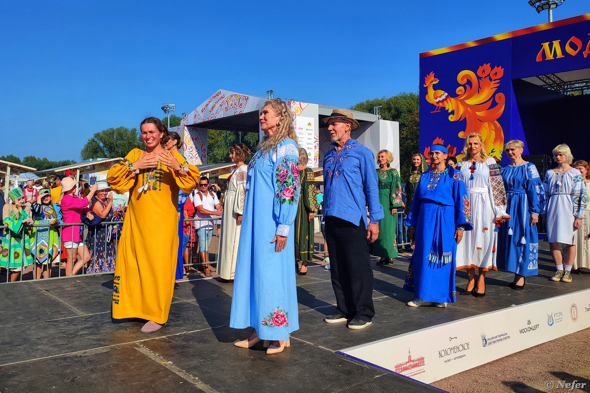 Помня, каким потрясающе ярким получился фестиваль "Русское поле" в прошлом году, я отслеживала сроки проведения. Вся движуха разворачивается на большой поляне в парке "Коломенское": три сцены, торговые ряды, ярмарка регионов, зона реконструкторов, кулинарная зона и ларьки с едой. Пришла и сразу попала на модный показ. Наконец увидела, как выглядит Руслана Козуля. Дизайнеры из разных регионов России показали коллекции одежды в русском стиле. У кого-то скромные наряды для повседневной жизни, у некоторых - прямо театральные костюмы. Мне нравится такая одежда. Но у известных мастеров платья стоят дорого. Я покупаю по случаю, например, на подобных фестивалях или заказываю у какой-нибудь швеи, которая специализируется на национальной одежде. Рубахи бывают с поликами и без. А сарафаны косоклинные или круговые, их еще называют круглыми. Все эти повойники, понёвы, лакомники и прочие древнерусские атрибуты. Нужно, чтобы мастерица разбиралась в этом. Коротенькое видео с показа. Руслана Козуля, Ла