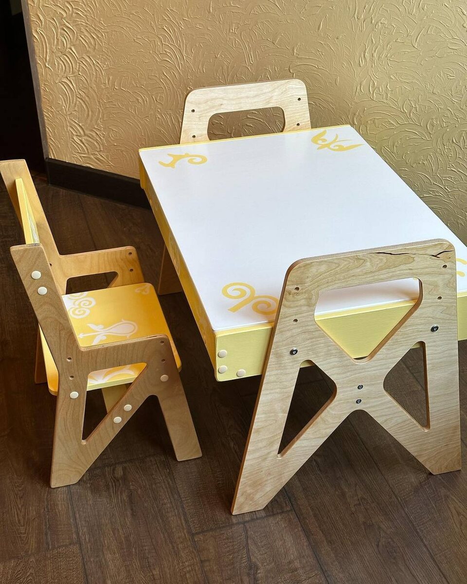 Перекраска детской мебели — это не только способ обновить интерьер, но и возможность развить творческие способности детей. Сегодня мы расскажем о проекте мастерской Danali Art, которые преобразили столик и стульчик от PAPPADO, используя меловые краски Aturi Design. Мастера из Danali Art поделились своим вдохновением: "Столик со стульчиком от PAPPADO нарядили в яркое платье. Желтый цвет способствует развитию творческого начала деток и создает радостное настроение. Фигурки с национальным колоритом будят фантазию. Пускай этот растущий комплект сопровождает детские активности малыша и приносит счастье." Для создания этого яркого и радостного комплекта использовались гипоаллергенные материалы и меловые краски Aturi Design в цветах "Белоснежный" и "Английский желтый". 1. Подготовка поверхности: - Мебель была тщательно очищена и подготовлена для нанесения краски. 2. Покраска: - Основной цвет столика и стульчика — "Английский желтый". Этот яркий и солнечный оттенок способствует развитию творче
