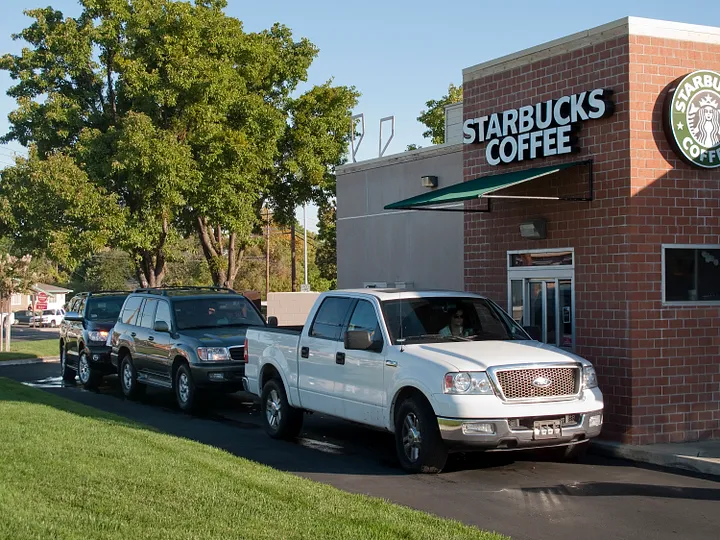 В пригородных «Stars Coffee» рядом с моим домом машины всегда заполняют всю очередь на автообслуживание. В одном из них, где парковка спроектирована явно неудачно, машины выстраиваются на дорогу, создавая заторы. Парковочные места у самого кафе практически пусты — внутри почти никого нет. Все сидят в своих машинах.
