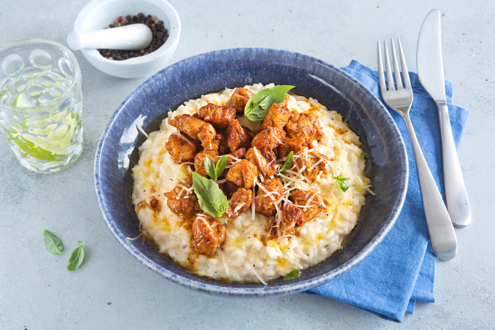 3. Постепенно добавляйте бульон, постоянно помешивая, пока рис не станет мягким и кремообразным.