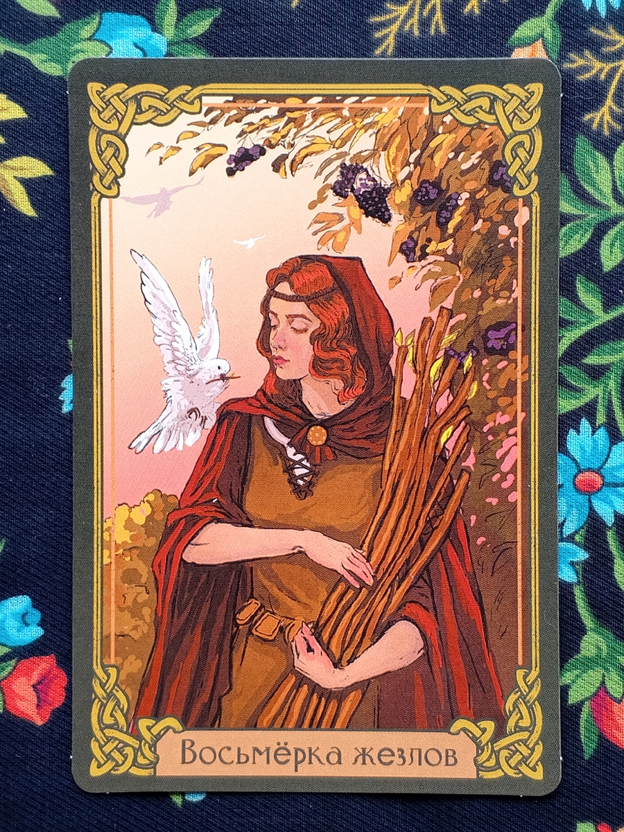 Здравствуйте, дорогие мои друзья. В этом выпуске мы с вами вместе постараемся разобраться в значении ещё одной метафорической карты, чтобы узнать, какие энергии будут сопровождать нас в течение этой пятницы - 20 сентября. В одном далёком и тихом лесу, где деревья шепчутся между собой, как старые друзья, а тропинки извиваются, как извилистые реки, жила девушка с сердцем, полным благих намерений. Она часто приходила сюда, на опушку леса, чтобы собрать хворост для домашнего очага, даря тепло не только своему дому, но и всей округе, словно согревая души своим добрым теплом. В тот особенный день, когда солнце играло в прятки с облаками, девушка собрала в своих руках восемь прутьев, символизирующих не только тяжёлый труд, но и возможности, которые жизнь щедро предлагала ей. Каждый прут был как новый путь, как шанс, который мог привести её к новым горизонтам. Неожиданно, как нежданный гость, на её плечо опустилась белая голубка. Её перья сияли чистотой и невинностью, а в клюве она держала