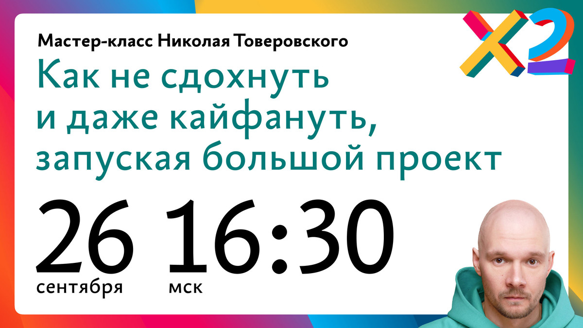 В ЧТ 26 сентября в 16:30 мск — бесплатный мастер‑класс Николая Товеровского «Как не сдохнуть и даже кайфануть, запуская большой проект»