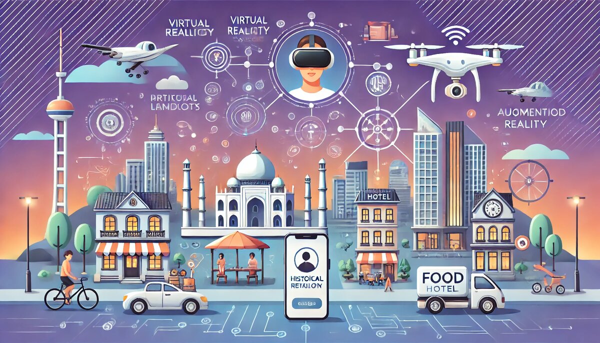 Представьте, что вы собираетесь отправиться в путешествие, но вместо традиционных маршрутов и очередей на границе вы всего за пару минут создаёте виртуальный тур, который позволяет вам исследовать любой уголок мира, не покидая дома. Или представьте, что ваш багаж самостоятельно находит дорогу в отель, а дроны доставляют вам еду во время отдыха. В этом материале мы рассмотрим, как технологии уже меняют туризм и что нас ждёт в ближайшем будущем. 1. Виртуальная реальность (VR) и виртуальные путешествия Виртуальная реальность уже активно используется в туристической индустрии. Технологии позволяют людям посещать музеи, национальные парки и даже исследовать древние города, не выходя из дома. Это открывает доступ к путешествиям тем, кто по каким-либо причинам не может отправиться в дальние поездки. 2. Искусственный интеллект (ИИ) и персонализированные поездки ИИ изменяет подход к планированию поездок, помогая туристам находить наилучшие маршруты, выбирать отели и даже планировать экскурсии,
