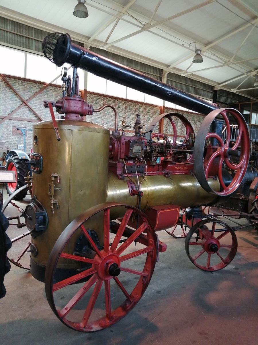 Музей старинной техники компании «Бизон» наполнен не только тракторами, полевыми орудиями и ретро-автомобилями. В самом центре экспозиции возвышаются два гиганта – паровые машины, которые на рубеже XIX и XX веков были основой промышленности. До внедрения в производство электрических двигателей балом правил пар. И эти старинные механизмы – английский и французский – как живые памятники той эпохи. Живые, потому что поддерживаются в рабочем состоянии: хоть сейчас закидывай дрова в топку и запускай! На фото – французская машина. Это Merlin & Cie Vierzon Cher 8-A 1928 года. Скоро экспонат будет отмечать сто лет со дня выпуска. В названии заложено, что агрегат был произведён в городе Вьерзоне (департамент Шер, центральная Франция). В XIX веке этот населённый пункт был крупным промышленным центром. Прославил его предприниматель Селестен Жерар (1821-1885) – изобретатель, пионер в создании сельхозтехники. Сын фермера, он собрал новаторскую молотилку для своего отца, а затем усовершенствовал её