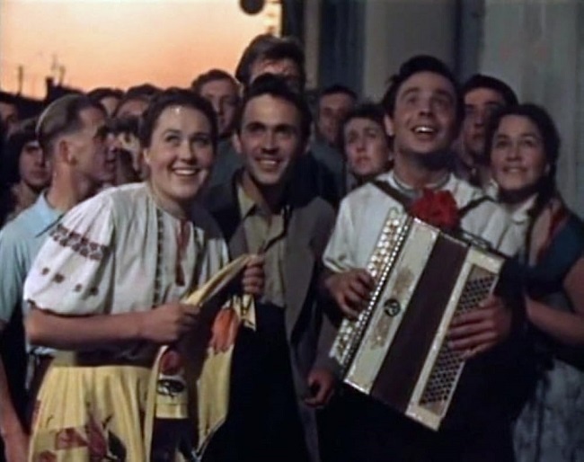 Люблю забытое советское кино! Вспомнился мне тут миленький фильм «Годы молодые» (1958) о девушке, мечтающей поступить в театральный вуз. В 1950-х очень красиво показывали большие города, светлые улицы, дома... Но всё Москва-Москва, а хочется посмотреть ещё какой-нибудь наш город, столицу союзной республики. Поэтому здесь - красавец Киев, один из самых эффектных городов СССР. Вообще, в эру Оттепели было очень много украинской темы, и даже место действия знаменитых фильмов – Украина. Тому пример не только задорная «Королева бензоколонки» (1962), но и «Весна на Заречной улице» (1956), где всё происходит в Запорожье. Ещё? «Высота» (1957) – это Днепродзержинск, тогда как по книге всё происходит в Сибири. А ещё парт-руководители и положительные начальники часто носили вышиванку под пиджак. В журналах мод публиковались вышиванки для женщин, которые были прекрасны с приталенной юбкой. Всё это было связано с тем, что Никита Хрущёв некоторое время был главой Украины, и очень любил эту республику