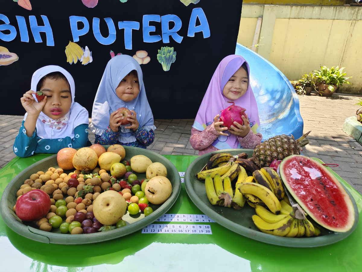 Вчера в школе дети играли в рыночный день. Из дома надо было принести овощи и фрукты. Челси принесла даже половинку арбуза Сама она на этой фотографии в середине, а рядом с ней Сара - она принесла виноград, яблоко и садовую землянику. Амира принесла драконий фрукт, два мандарина и два огурца. Овощи сложили отдельно от фруктов, поэтому их на этой фотографии нет. Но есть на другой Задачей детей было продавать и покупать фрукты и овощи за игрушечные деньги, считать сумму и давать сдачу. Продавцы и покупатели менялись местами. Амире игра понравилась. А после неë всё сфоткались вместе Я спросила, зачем Амира держит Чантаку, а она ответила - чтобы не убежал. Хотя там бежать-то особо некуда, дядя Супри закрывает ворота и никого не выпускает до прихода родителей.