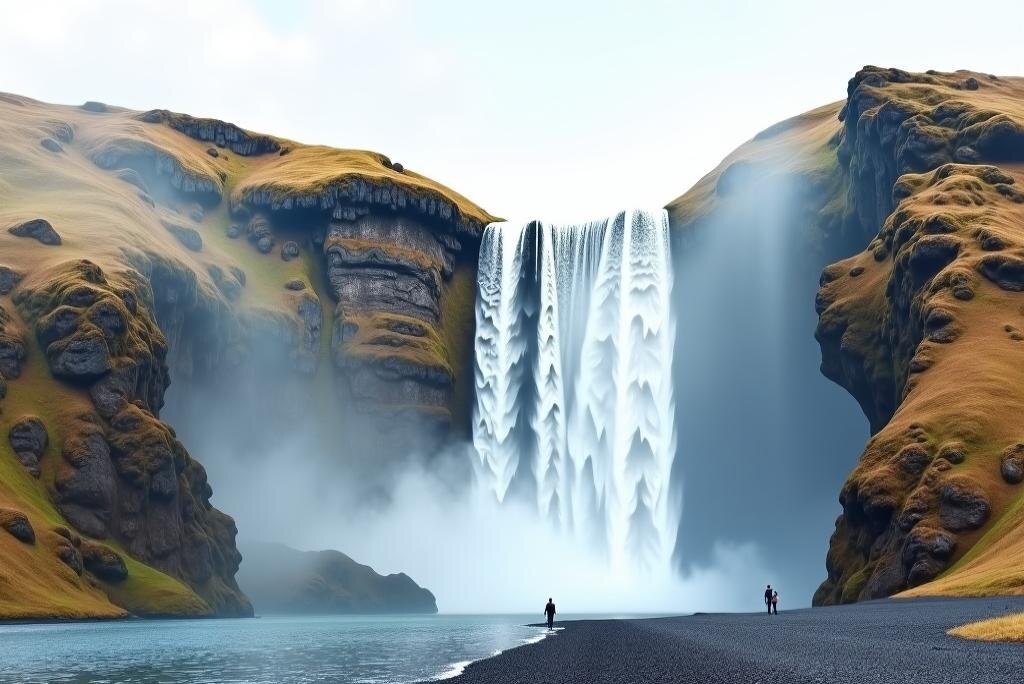 Водопад Скоугафосс — один из крупнейших в Исландии. Его ширина составляет 25 метров, а высота — 60 метров. В ясные дни здесь можно наблюдать яркие радуги, возникающие в водяной пыли. Туристы могут подняться на смотровую площадку наверху водопада по лестнице, которая открывает захватывающий вид на равнины и океан. Скоугафосс расположен на южном побережье, рядом с деревней Скоугар, что делает его легкодоступным для туристов.