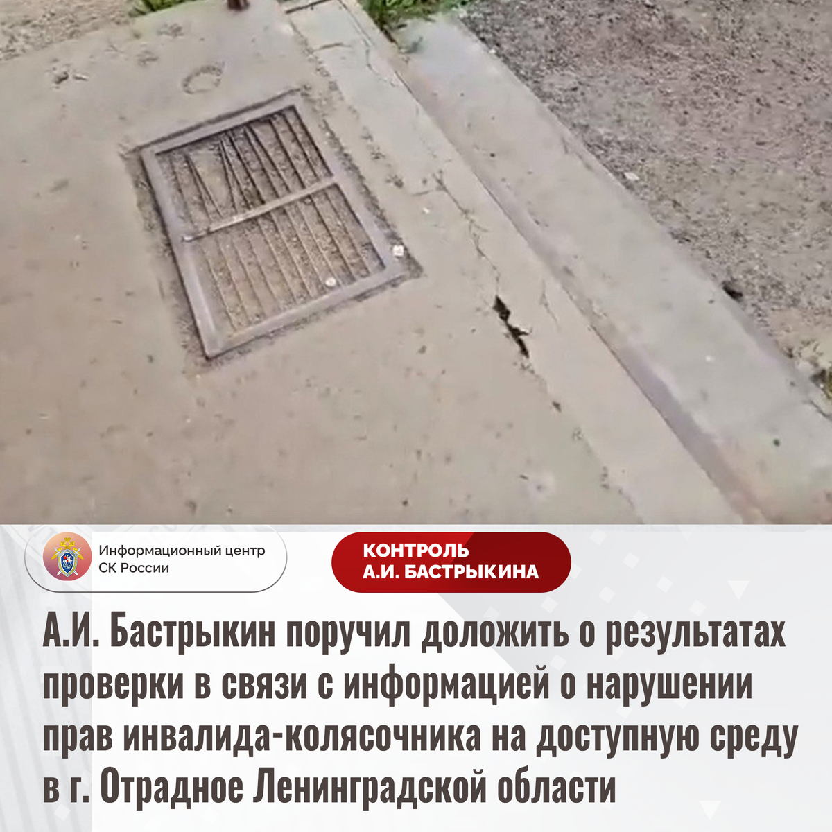 А.И. Бастрыкин поручил доложить о результатах проверки в связи с информацией о нарушении прав инвалида-колясочника на доступную среду в г. Отрадное Ленинградской области