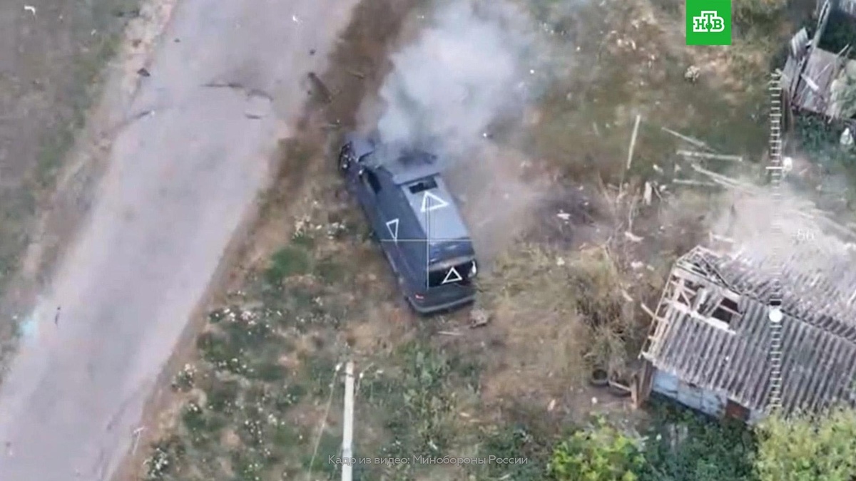[ Смотреть видео на сайте НТВ ] В российском оборонном ведомстве сообщили об уничтожении автомобиля украинскими военными в Курской области. В Минобороны сообщили, что автомобиль, замеченный в ходе разведки в приграничном районе Курской области, был уничтожен из гранатомета. Минобороны РФ: «После анализа полученных разведданных было принято решение об огневом воздействии по автомобилю противника с опознавательными знаками. В результате прямого попадания из гранатомета автомобиль боевиков ВСУ был уничтожен». [ Смотреть видео на сайте НТВ ]