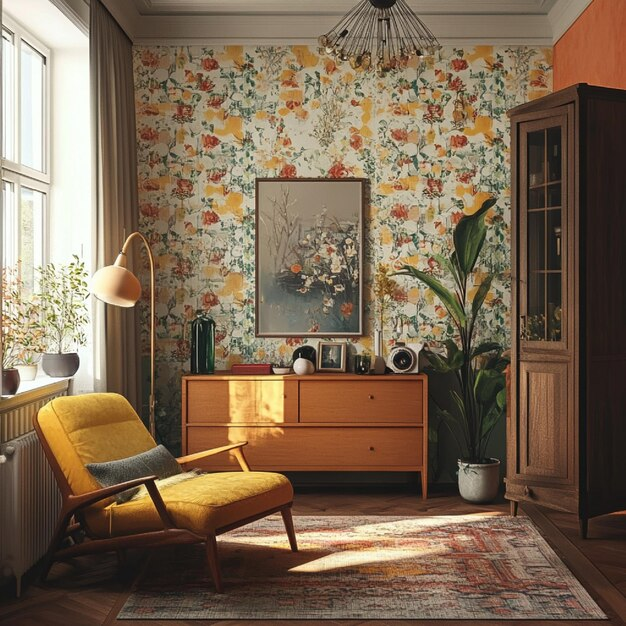3. При создании акцентной стены с яркими обоями можно усилить эффект, подобрав другие элементы интерьера в тон. Например, диван, ковер, шторы или декоративные подушки, перекликающиеся по цвету с узором на обоях, помогут создать гармоничную и целостную композицию.