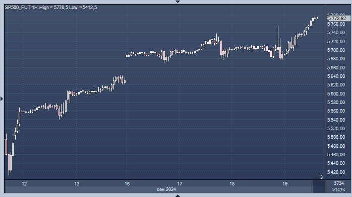График фьючерса на индекс S&P 500 интервалами в 1 час