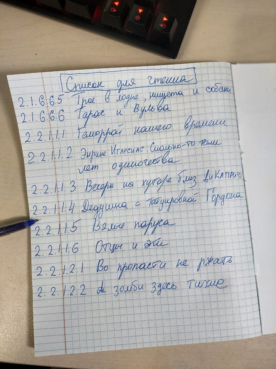В её основе была придуманная мной шестиричная числовая система. Я взял тетрадь и начал выписывать в нее всё, что хотел прочитать. Сначала список получился небольшим - он включал в себя только книги целиком. Мне это показалось недостаточно динамичным. Тогда стал вносить названия произведений. Сборники рассказов были кладезью: читать можно быстро и сраз
